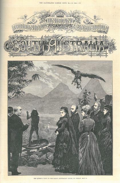 As often happens, too late and in researching an entirely different subject, I happened upon the perfect illustration for my new book, Australian Predators of the Sky. The image was titled ‘The Queen's Visit to the South Australian Court ...' and it made an attention-grabbing cover of the last issue of The Illustrated London News for May 1886. The accompanying text claimed that Queen Victoria was among the many who enjoyed ‘the realistic scene on the banks of the Murray River', created for the Colonial and Indian Exhibition, in London.