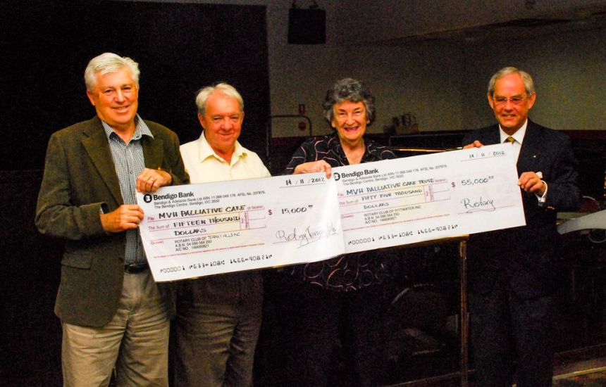 On 14th November the Rotary Clubs of Pittwater and Terrey Hills officially handed over the proceeds from their fundraising efforts in support of extensions and upgrades to the Palliative Care Centre at Mona Vale Hospital. The funds, totalling $70,000, were presented by representatives of the two clubs at a ceremony at Pittwater RSL Club.