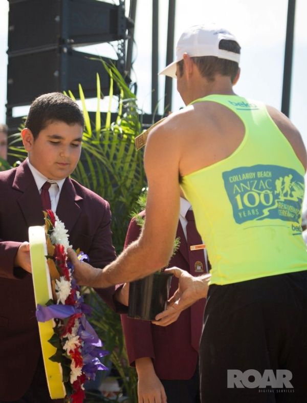 The commemorative event was held at 12:15pm, aligning with the Dawn Service at Gallipoli. Large LCD screens televised the “live” Gallipoli Dawn Service prior to the simulated landing, which came to shore in waves of surf boats, prior to the wreath laying ceremony.