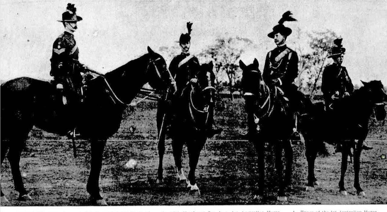 A TROOP OF THE 6TH (N.S.W.) AUSTRALIAN LIGHT HORSE REGIMENT. (1914, December 2). Sydney Mail (NSW : 1912 - 1938), p. 10. Retrieved from http://nla.gov.au/nla.news-article166252740