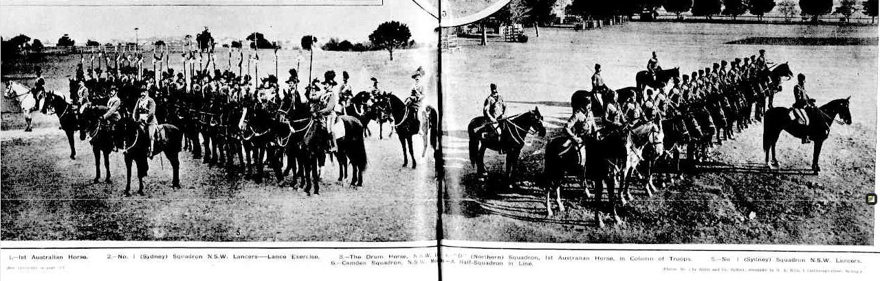 4. (Northern) Squadron, 1st Australian Horse, In Column of Troops. '-A Half-Squadron In Line. 5,-No. 1 (Sydney) Squadron N.S.W. Lancers. (Photos, No. 1 by Kerry and Co,, Sydney, remainder by G. A. .Hills, 9 Castlereagh-street, Sydney.)