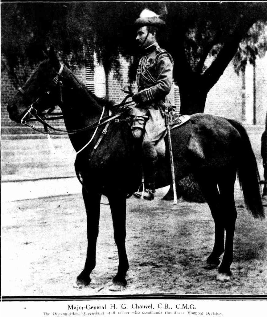 The Distinguished Queensland staff officer who commands the Anzac Mounted Division. GALLANT LEADER OF THE ANZACS AT ROMANI. (1916, September 6). Sydney Mail (NSW : 1912 - 1938), p. 18. Retrieved from http://nla.gov.au/nla.news-article160388113