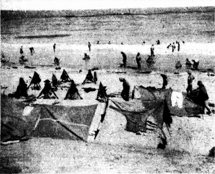THERE are large numbers of sea shells in the soil, nearly all of them of one type, a bivalve of about lj.in in diameter. They must be, of course, of great antiquity; yet the same shell is to be seen on the beach to-day. There are snakes in this part of the country also; but I have not heard of any case of snakebite. On the other hand, a good many men have been bitten by scorpions, which, though not so serious, is no joke, especially if the assailant is one of the large black variety. Tarantulas, also, are fairly common, but they run away when-ever possible, and only bite if driven into a corner. There are also ants in great variety and abundance. Lizards, too, are very numerous; and I noticed four or five different species. They are, of course, perfectly harmless, though the Arabs say there is one sort which has a poisonous bite. Take it altogether, it is by no means a bad country for campaigning. One need never be cold, and can never be wet, and the nights are so warm that if you do lose your way it is no hardship to lie down and sleep where you are. The nights, indeed, are wonderful, especially when there is no moon to dim the stars, which shine with a living brilliance not seen in our homes of cloud and mist. WITH THE ANZACS IN SOUTHERN PALESTINE. (1917, November 14). Sydney Mail (NSW : 1912 - 1938), p. 26. Retrieved from http://nla.gov.au/nla.news-article160628984