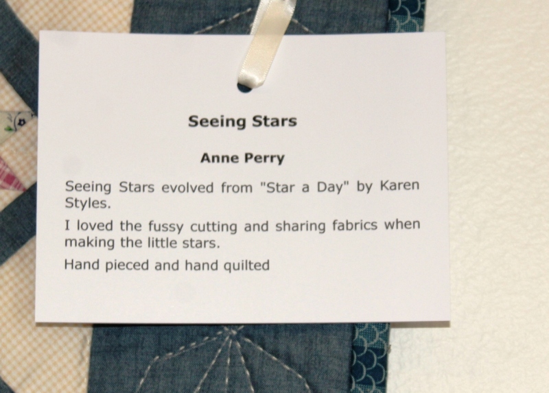 The quilts here today all tell a special story. This year's raffle prize is a quilt called ‘Touching Stars’ from the 1930s - it was bought on line from America then these wonderful quilters finished it by adding a back and quilting the top extensively.