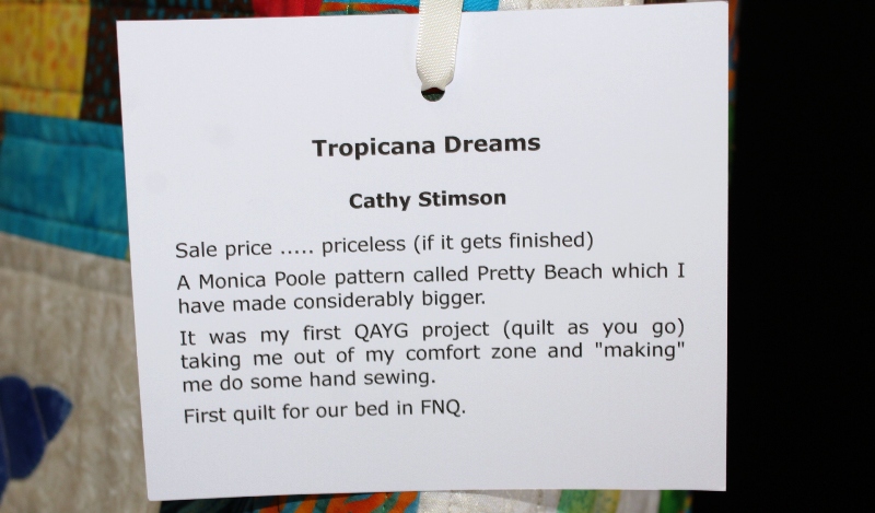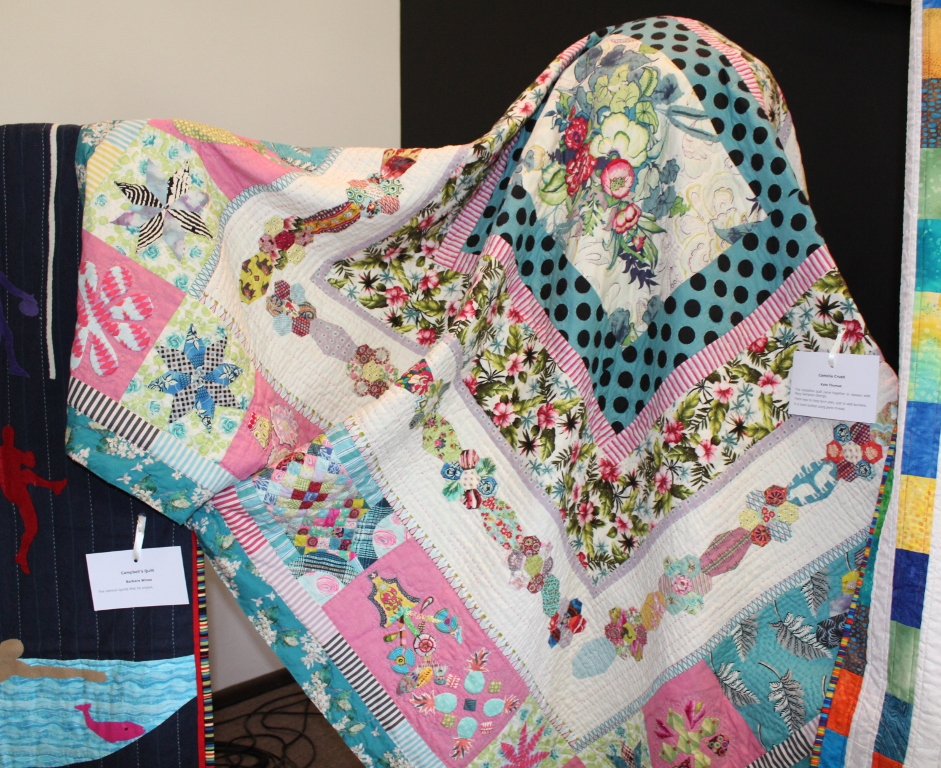 "The Avalon Quilters are a very special group and have met most Thursdays for the last 35 years. Every item displayed here has been crafted by their nimble fingers – even the marmalades and chutneys. The proceeds from this stunning quilt show are given to a charity, and for the last six years they have supported the Australian Mitochondrial Disease Foundation - thank you so much. We also would like to extend our best wishes to three long time quilters, Libby, Margaret and Kate who are battling illness and injury.