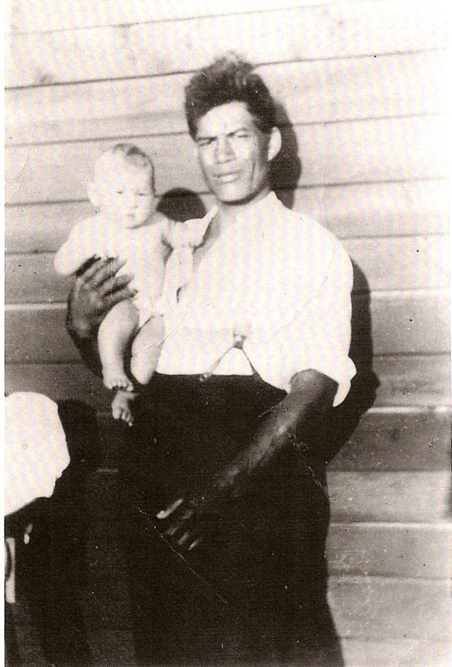 James Hall Leef at 3 months old with his dad Ruki Leef - probably in Donnelly's Crossing, very Northland NZ.