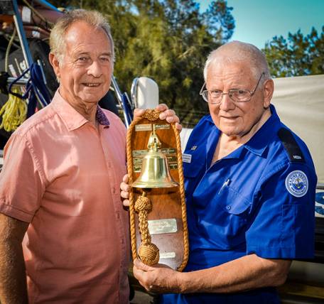 Victor Lawrence Unit Commander of Broken Bay Unit, and Lt Alan Turner-Morris, holding the bell: awarded for promotional work on behalf of the Unit.