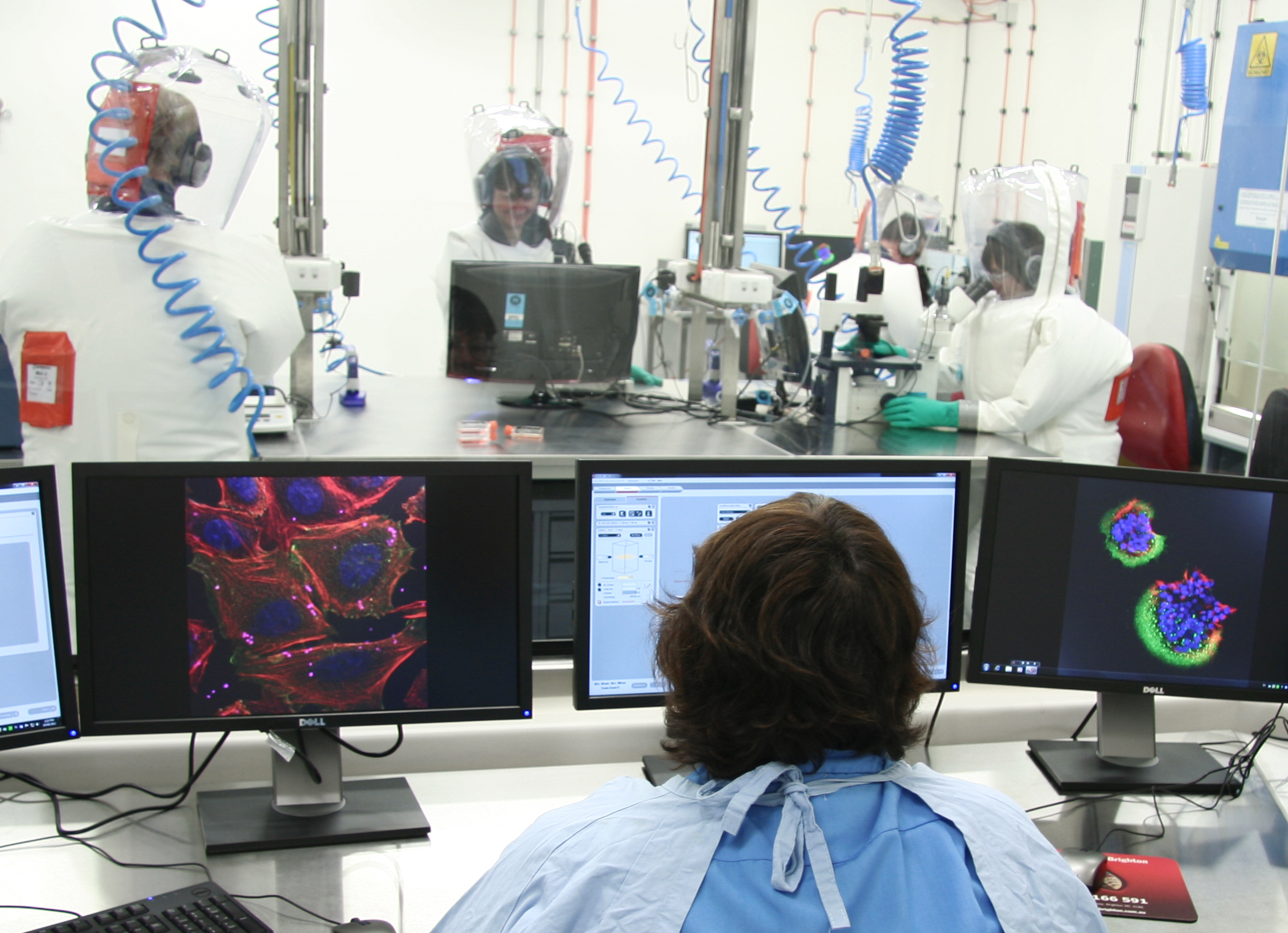 Scientists working in the secure area at CSIRO's Australian Animal Health Laboratory (AAHL)