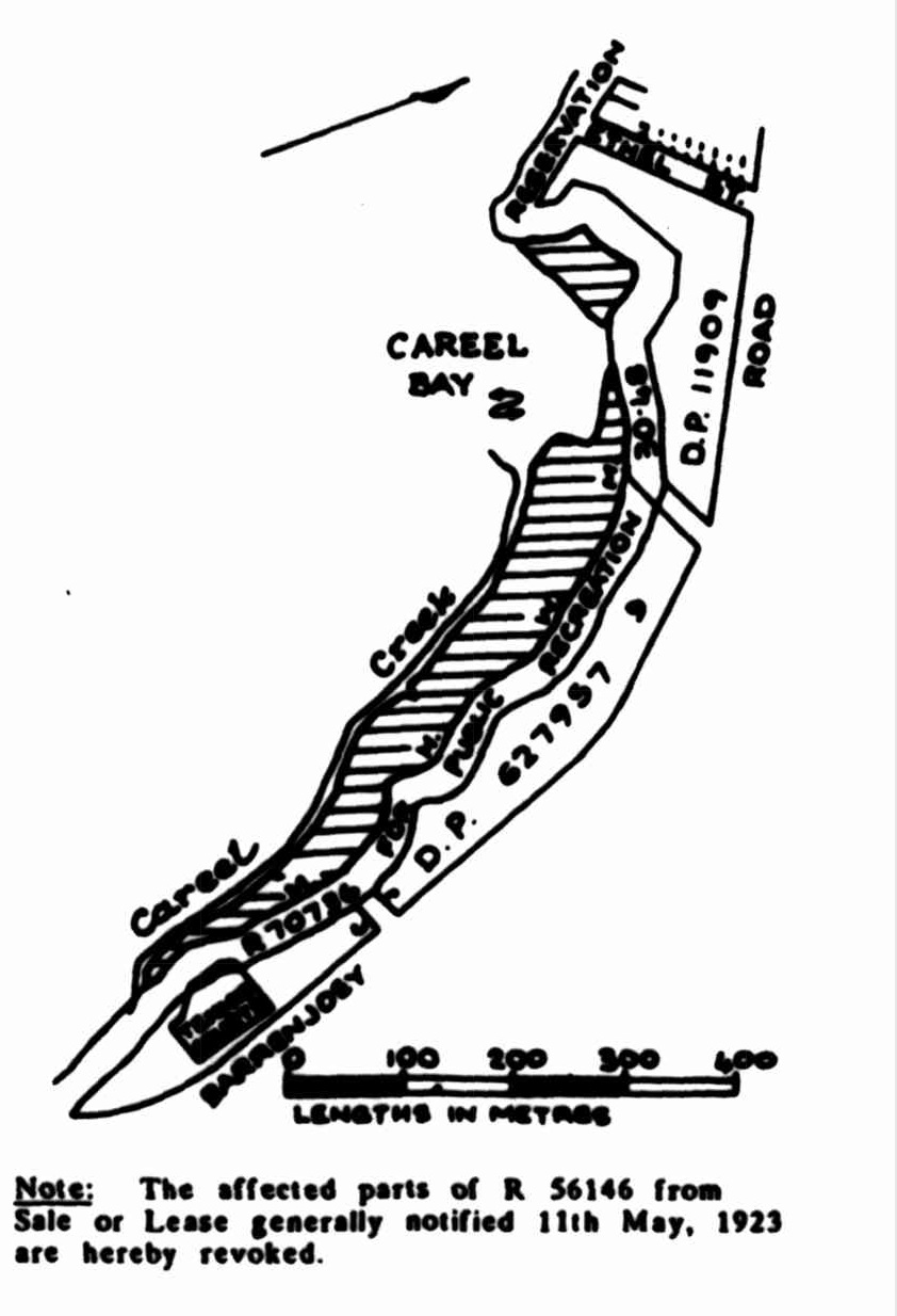 This was formalised in 1926: Volume 3,847, folio 56 is the land donated by James Young and Robert Browning (Palm Beach Land Co - follow on from Barrenjoey Land Co.) to the then council and used as a tip, filling in what had been wetlands and a mangrove area, and later used for a tennis courts area, Hitchcock Park and the Careel Bay Soccer (Playing) fields - as well as being where the Careel Creek road bridge and concrete drainage pipe was placed with works completed on March 10 1938 - this concrete drainway/roadbridge is still in place: