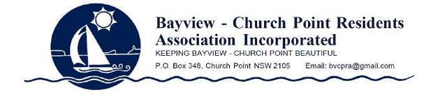 Profile: Bayview - Church Point Residents Association The BCPRA AGM is on Tuesday March 21st, 7.00 p.m. for 7.30, At BYRA - 1842 Pittwater Rd, Bayview - find out a little more about this local voice for residents, established in 1907, and still going strong