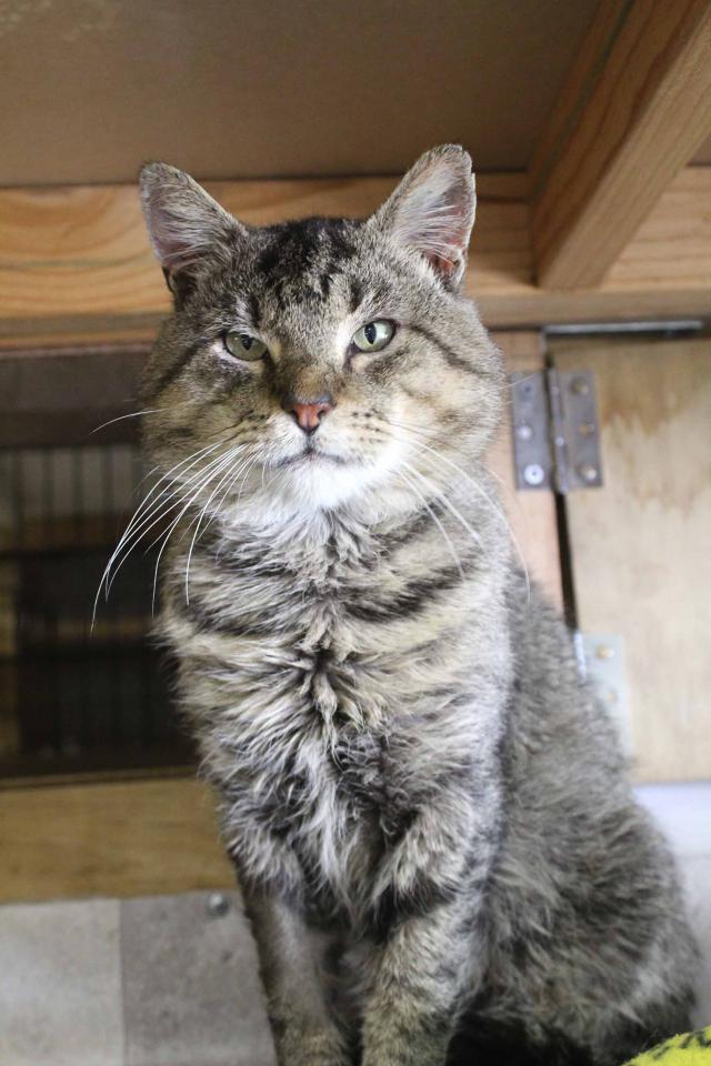 This scruffy, lovable 8-year old tabby was found wandering the streets before being rescued. He is the sweetest boy, friendly, affectionate, interested to meet new people and totally laid back and calm. He adjusts very quickly to new surroundings and is not carry-case shy. He is also good with other cats and it is obvious that he originally was in a home because he has very good manners. He is a short haired boy who weighs between 4 and 5 kg.