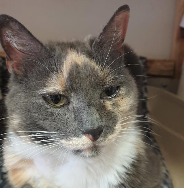 Purdy is sweet and smoochy blue tortiseshell girl approximately 8 years old. She is super relaxed and friendly and is social with other cats.