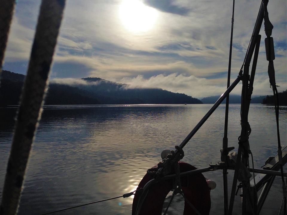 Early morning calm with a feathered friend aboard at Little Jerusalem Bay.