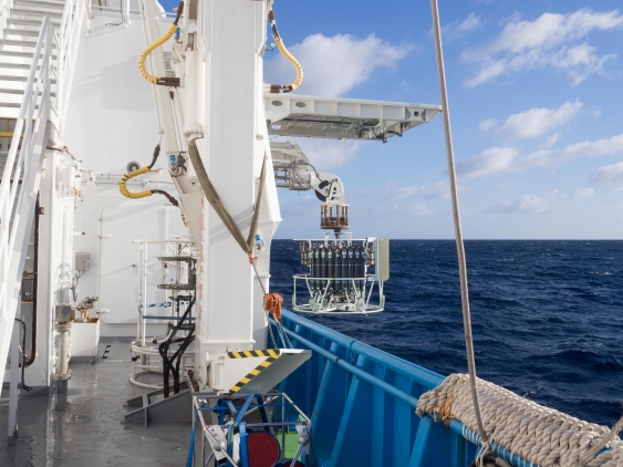 Oceanographers from UNSW helped with the operation and sampling of the Conductivity, Temperature and Depth instrument (pictured) which recorded vertical profiles of water mass properties. Photo: Maurice Huguenin.