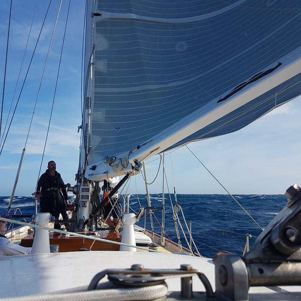 Entering Bass Strait, their boom snapped during a gybe and the same thought went through everybody’s mind on board. Would they not be able to bring her home?