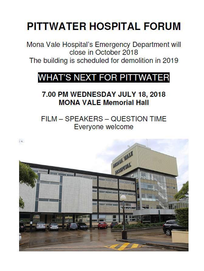 Addressing the meeting were Dr Andy Ratchford, the head of Mona Vale Hospital’s Emergency Department, Nicola Pellegrini of the Northern Beaches Hospital Project Team and Frank Bazic, who is General Manger of Mona Vale and Manly Hospitals.