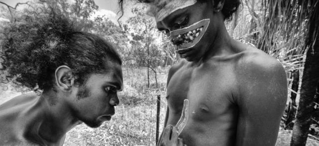 Image detail: Liz Thompson, Jeremy Cameron painting his brother Miko with the Gandjalala (Sugarbag Hunter) design at Weemol, NT.