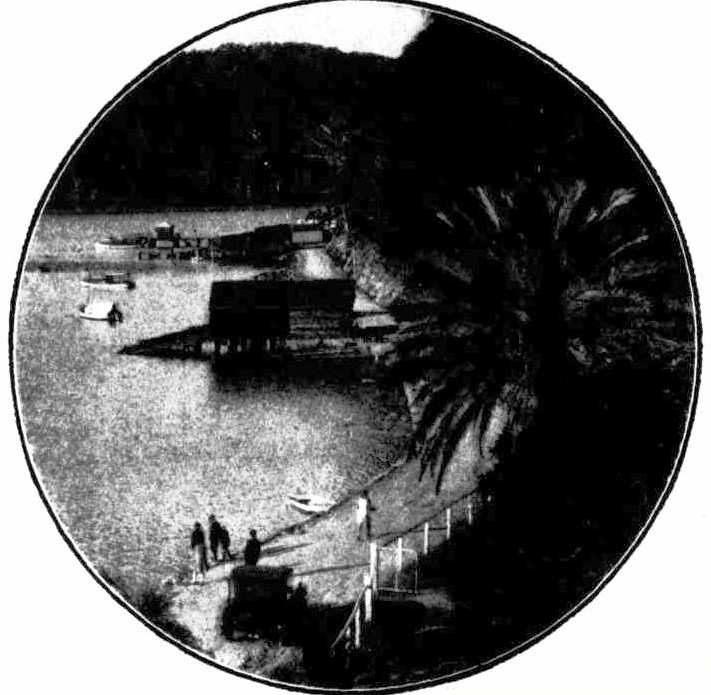 Ascending the cliffs, a view of Pitt Water is beheld, being the harbour belonging to this estate. If an arrangement were madeto have a small steamer plying along the beautifully wooded, lofty, and precipitous shores of the Hawkesbury River, parties of travellers could meet it at this spot, avoiding the disagreeable sea voyage by coming from Manly by land. The steamer could convey them from Mr. Collins' house to Windsor, and the trainwould take them back to Sydney - it being understood that the Windsor railway will shortly be completed.