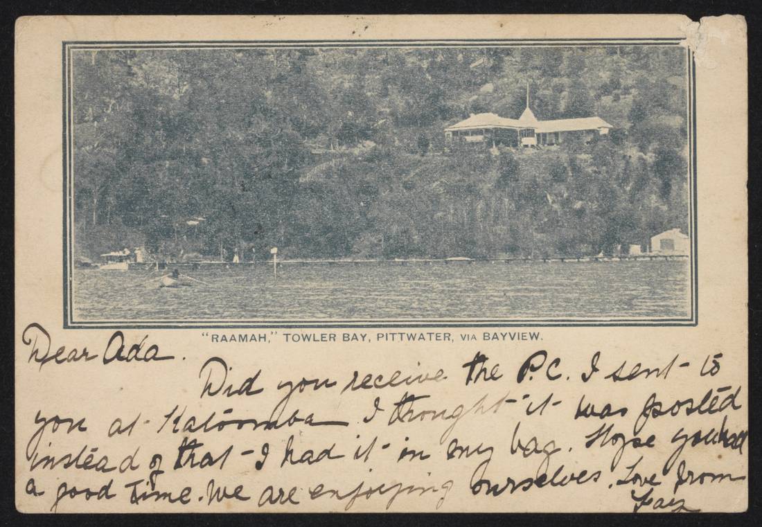 'Church Point, Pittwater'. Digital Order No. a106164 ca. 1900-1927, From Album - Scenes of Pittwater, N.S.W, Date of Work ca. 1900-1927 by Sydney & Ashfield : Broadhurst Post Card Publishers. Courtesy State Library of NSW