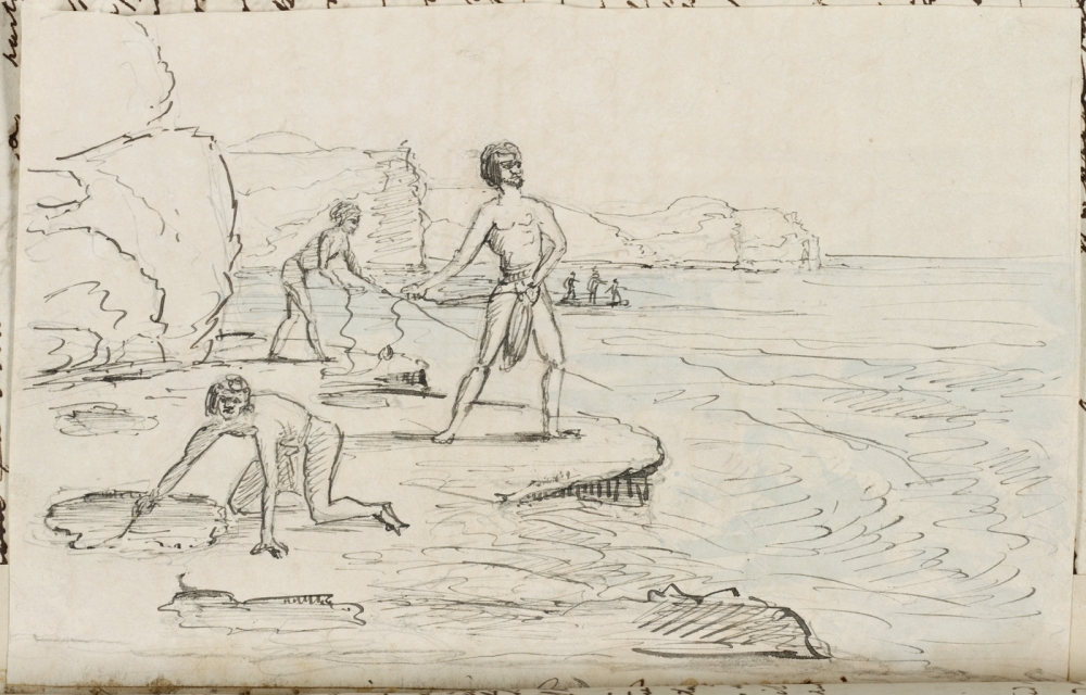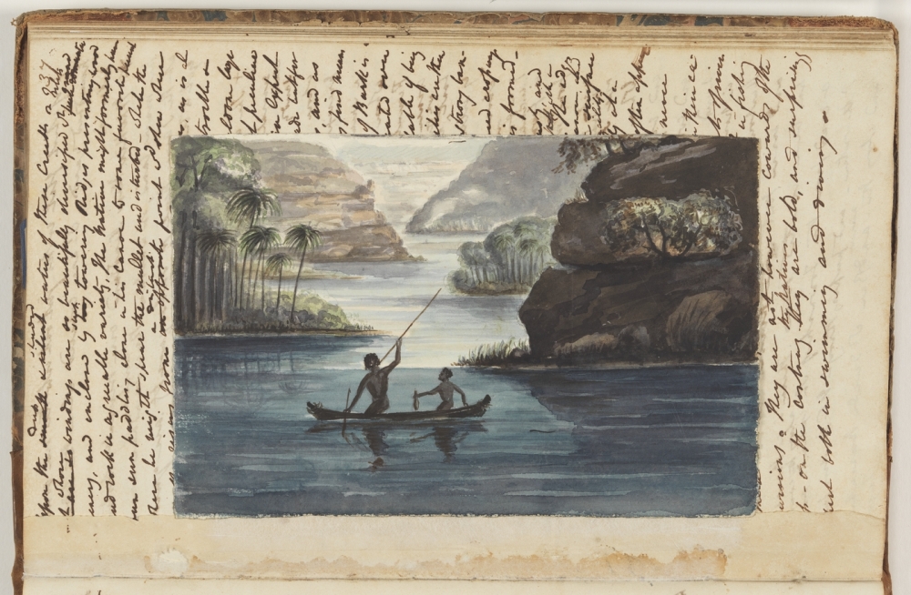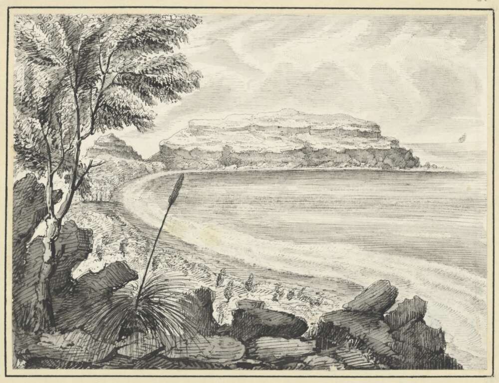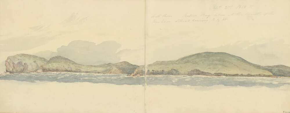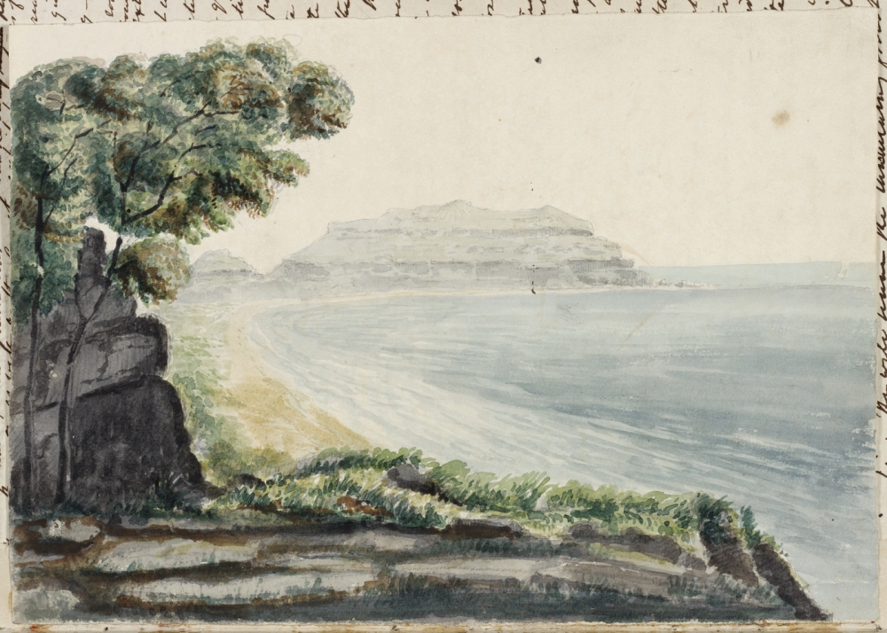 'SW. Arm of Broken Bay New South Wales from an Island at the Entrance. Sepr 1789' by William Bradley - Drawings from his journal `A Voyage to New South Wales', 1802+ , Image No.:a3461014, courtesy State Library of New South Wales.