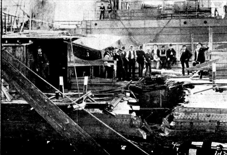 The towers are temporary structures, the inner one being twenty feet above the rock, and the outer one ten feet.. Each tower is constructed of four hardwood posts, firmly fixed in the rock, which has been excavated to receive them, and they are protected from the weather by sheets of corrugated iron. The lanterns are fixed up on the wooden structure, and about four feet below the lights running round each tower, is a platform from which the trimmer can light and clean the lamps. A sleeping berth for the light-keeper has been fitted up in the larger tower, which is placed at a distance of 1180 feet in a W.N.W". direction from the outer tower. The outer light is 315 feet and the inner one 347 feet above high water mark.