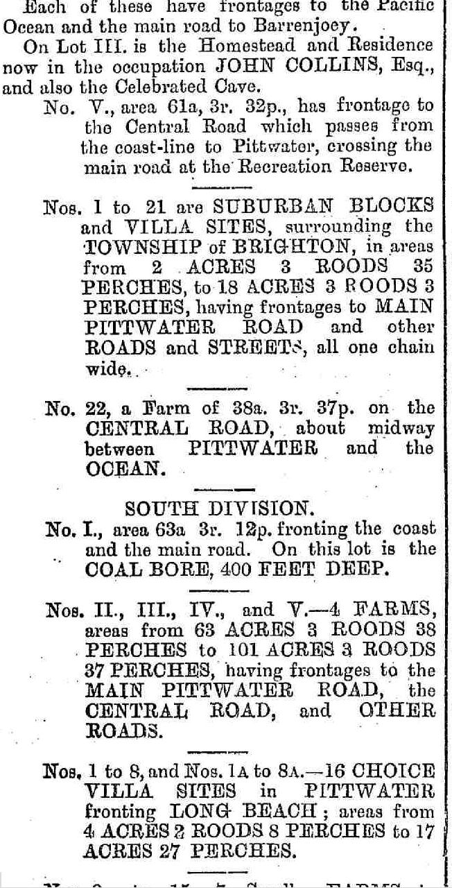 Mr Dalwood soon had the land up for sale as the 'Dalwood Park Estate' and then the 'Three Beaches Estate':