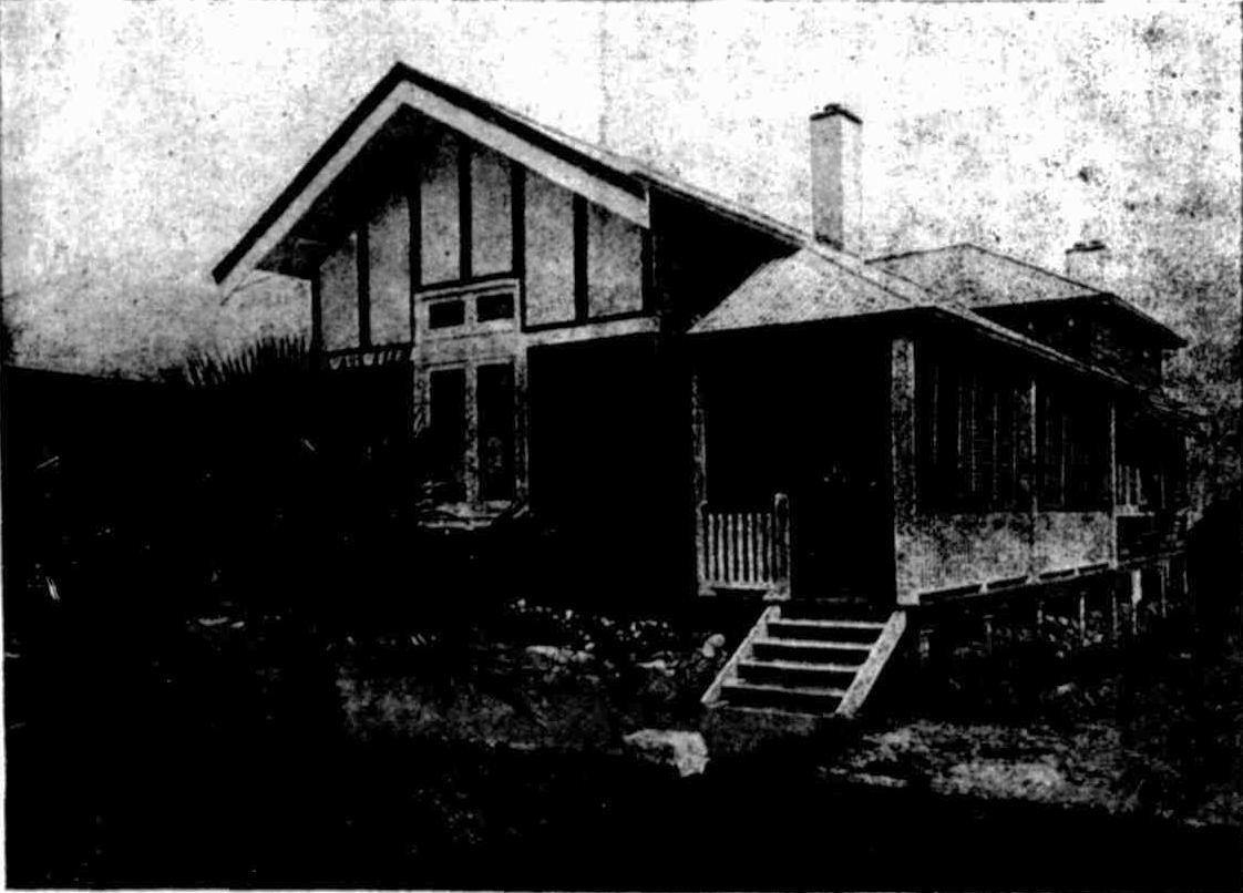 To reach "Hi-Brazil," you must either climb a long flight of steep stone steps, which eventually lead you past the goldfish pond to the main entrance, or take the newly constructed driveway that skirts the house itself, so visitors enter the living-room through the patio.