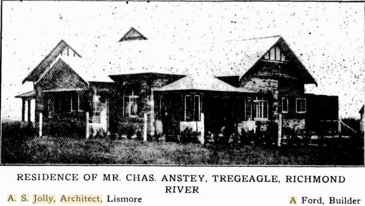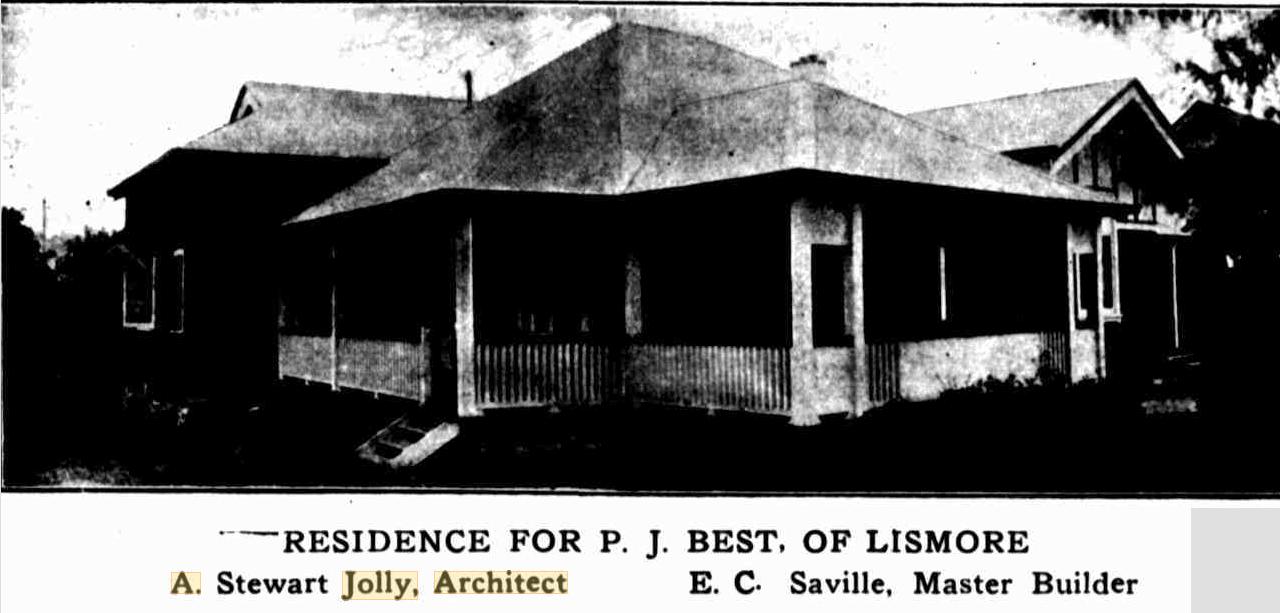 Allied with the commercial history of Lismore for the last 52 years have been the names of Messrs. Brown and Jolly, the additions to whose premises in Woodlark-street will be opened at 3.30 p.m. on Tuesday. The firm was founded in 1881 by Mr. James Jolly, who it as present in Lismore and is still a member of the Board of Director's. Coming to Australia in that year, Mr. Jolly was among the pioneers who visualised the possibilities of the Richmond district, and he started business in a small factory built on a site now known as Glasgow-lane.