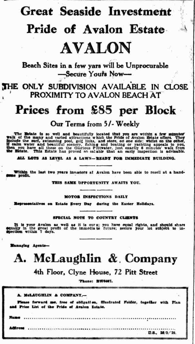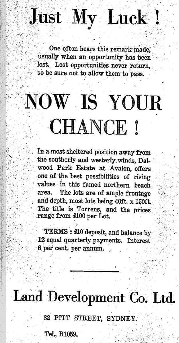 This wasn't the only Avalon Beach land sale going on at that time: