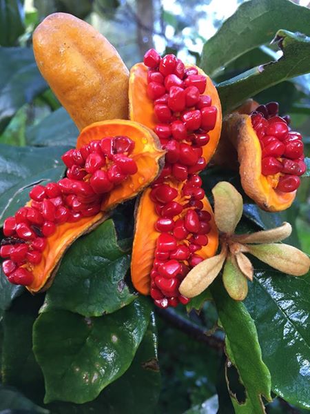 Thanks to the Pittwater Natural Heritage Association (PNHA) for this photo of a seed pod of a small local native shrub Pittosporum revolutum which splits open, inviting hungry birds and animals to eat its attractive fruit and spread the seeds. This one snapped in Avalon Beach, Sydney. The pods follow clusters of small yellow flowers - a nice plant for the garden!