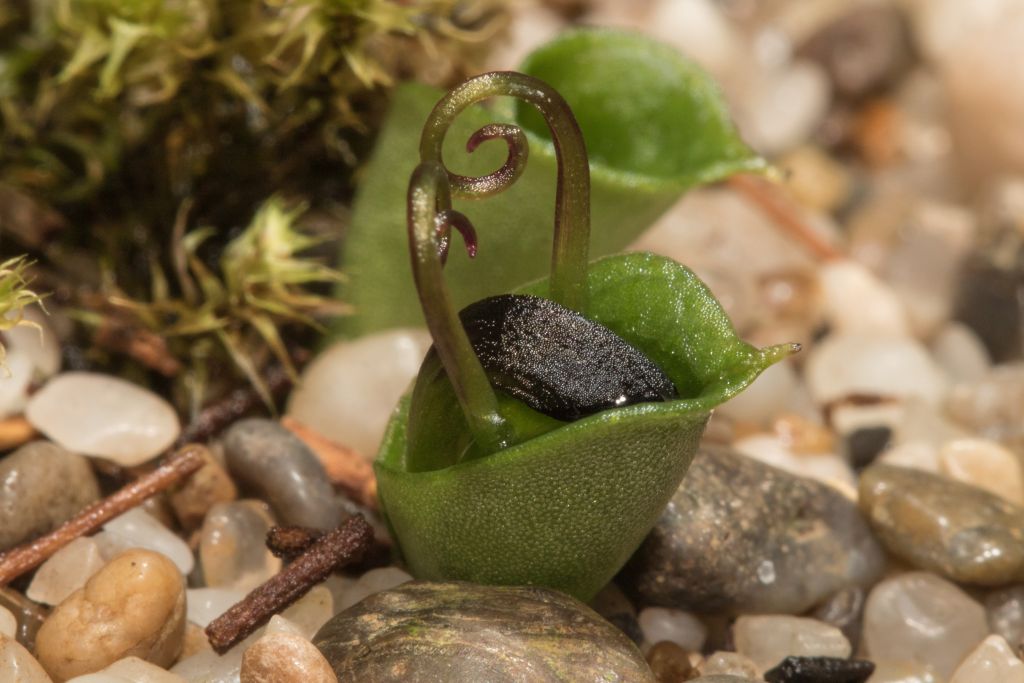 Corybas sulcatus (Grooved helmet-orchid) is one of two endemic orchids which occur on Macquarie Island (Photo: Royal Tasmanian Botanical Gardens)