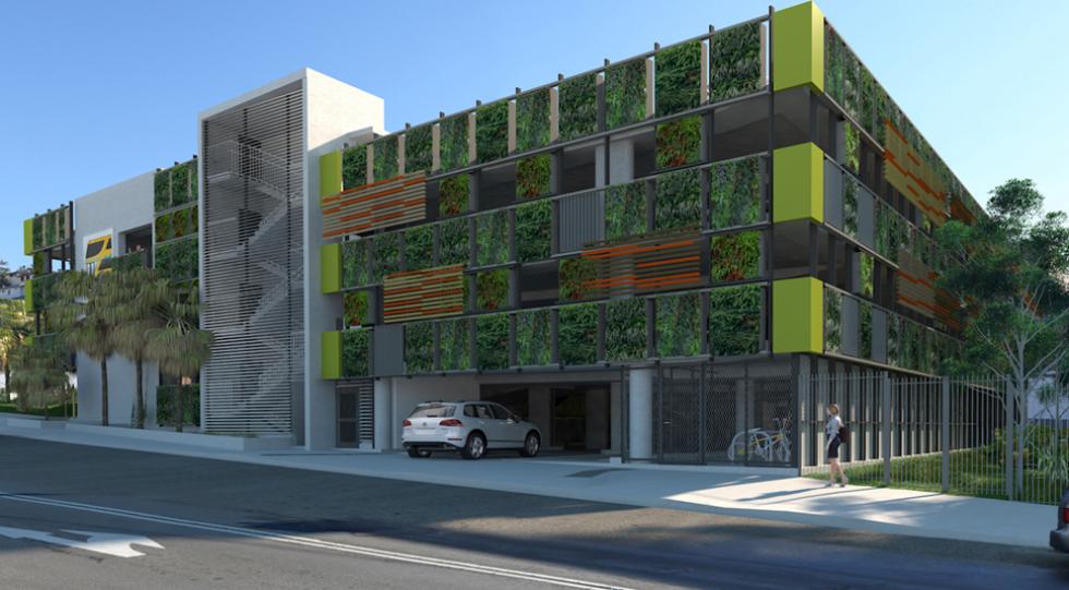 An artist's impression of the car park and external "breathing wall". Image: DesignInc