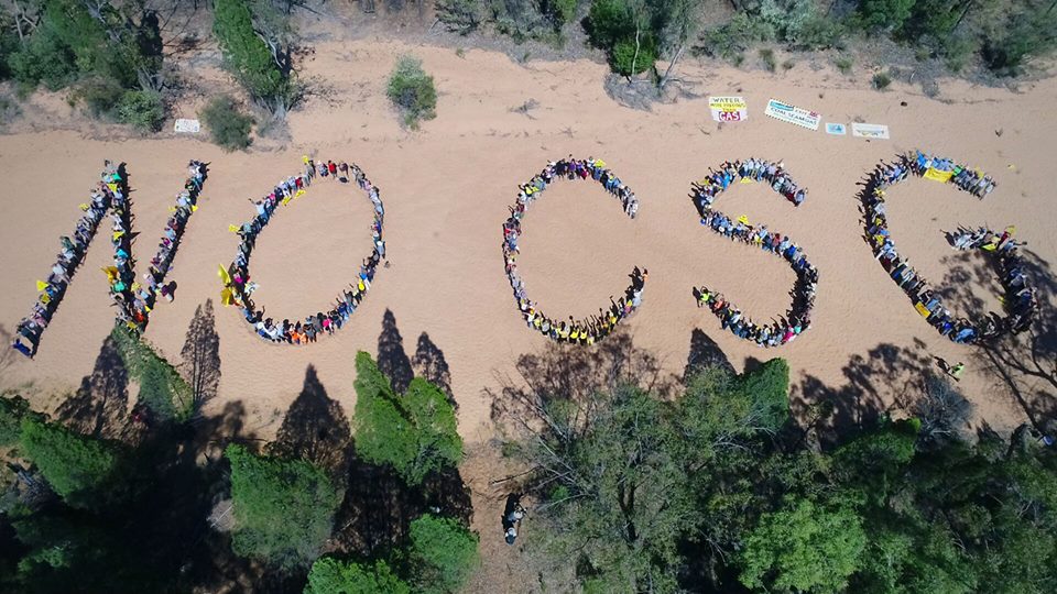 “People from all walks of life made a human sign in a sandy creek bed in the Pilliga State Forest to demonstrate that the CSG industry does not have social licence here.