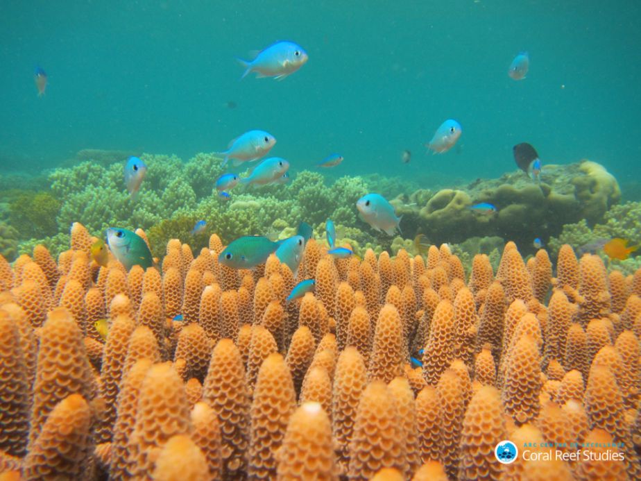 Chromis (damselfish), Lizard Island, Australia. Credit: ARC CoE for Coral Reef Studies/ Jodie Rummer