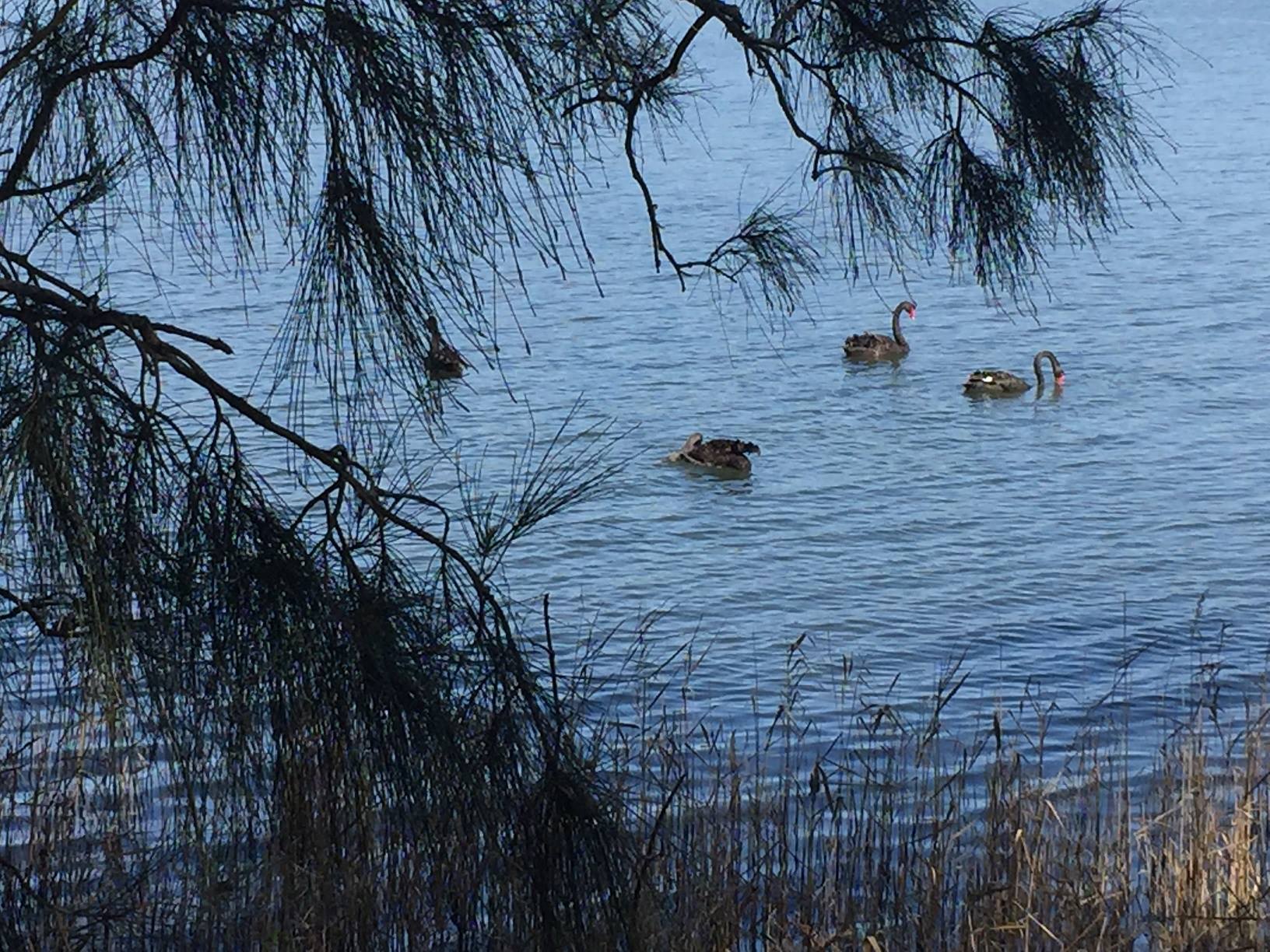 Swans feeding on Narrabeen Lagoon 12.9.18, in the little bay where a proposed aquatic walkway could damage their habitat. We are negotiating for a widened onshore track instead. - Pittwater Natural Heritage Association (PNHA).