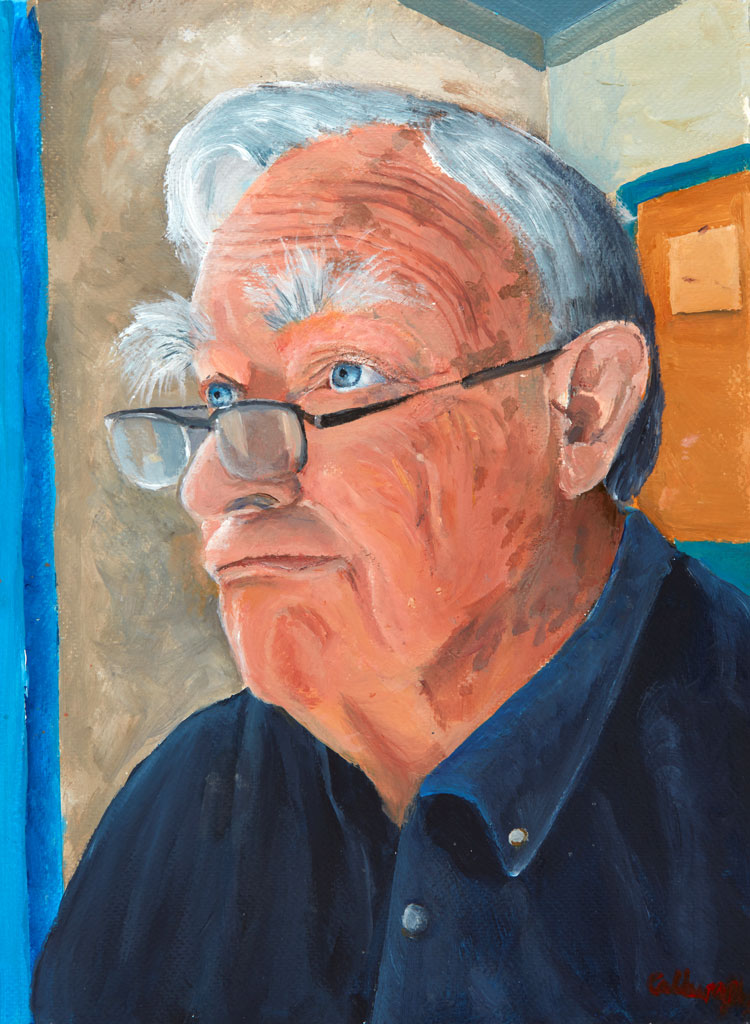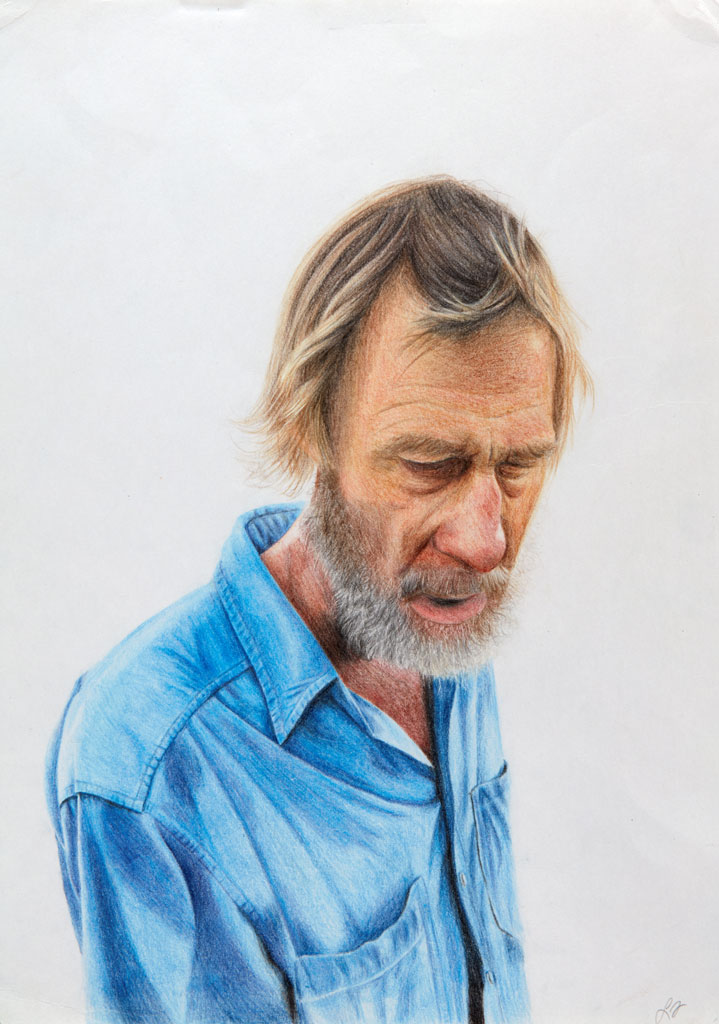 Artist's Statement: Johnny is a shy, unassuming yet colourful character, well known in our community as a passionate environmentalist and advocate for getting kids into the garden. He is generous with his time, sharing his knowledge on how to live more consciously. He has spent many hours in our garden teaching my sister and me, along with all the neighbourhood kids, about native and edible plants and how to nurture our land.