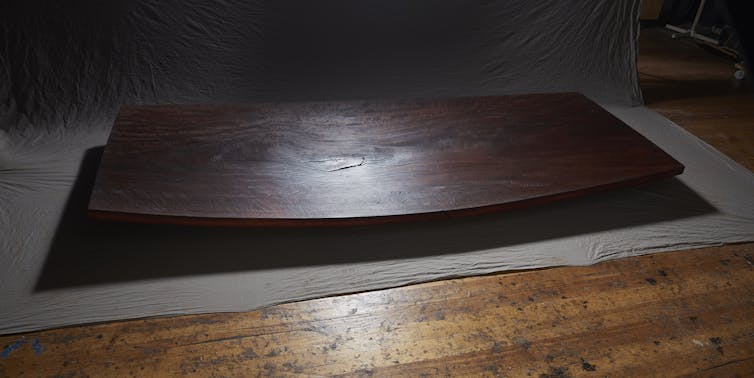 Geomorphologist Jim Bowler was the first to identify the material as red gum; he used radiocarbon dating to place its age at about 8,000 or perhaps 10,000 years old. Later I call him and, over the phone, he sketches out the wood’s journey from the banks of the Murray River to the workshops of inquisitive artisans like Damien.