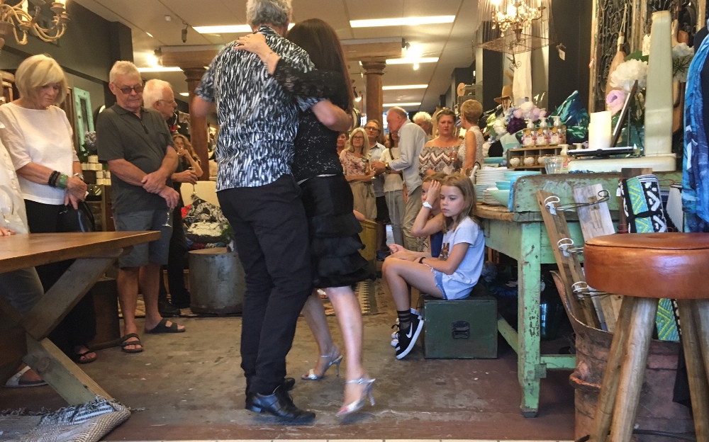 Jude dancing Argentine tango at her new Linocut exhibition at RUST Exhibition runs until 24th March 2017 Drop by!