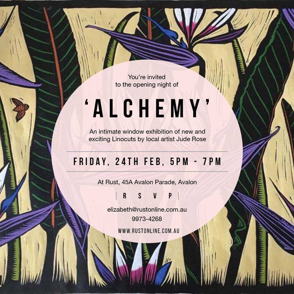 2017 Two Exhibitions at Rust in Avalon Beach 'Lush' and "Alchemy' - working on metaphorical linocuts (Inlets, islands and more), Still Life oils, Continuing a series of ink drawings titled 'On The Brink'.