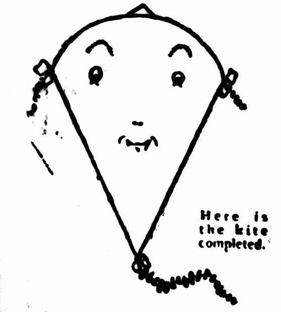 When it has dried off, your kite is ready to fly, and all you have to do is to tie on one end of your ball of string at the point marked "X" in Diagram 1. SOMETHING TO MAKE: THE ARGUS JUNIOR (1947, October 7). The Argus (Melbourne, Vic. : 1848 - 1957), p. 6 (The Argus Super Comic). Retrieved from http://nla.gov.au/nla.news-article22512212