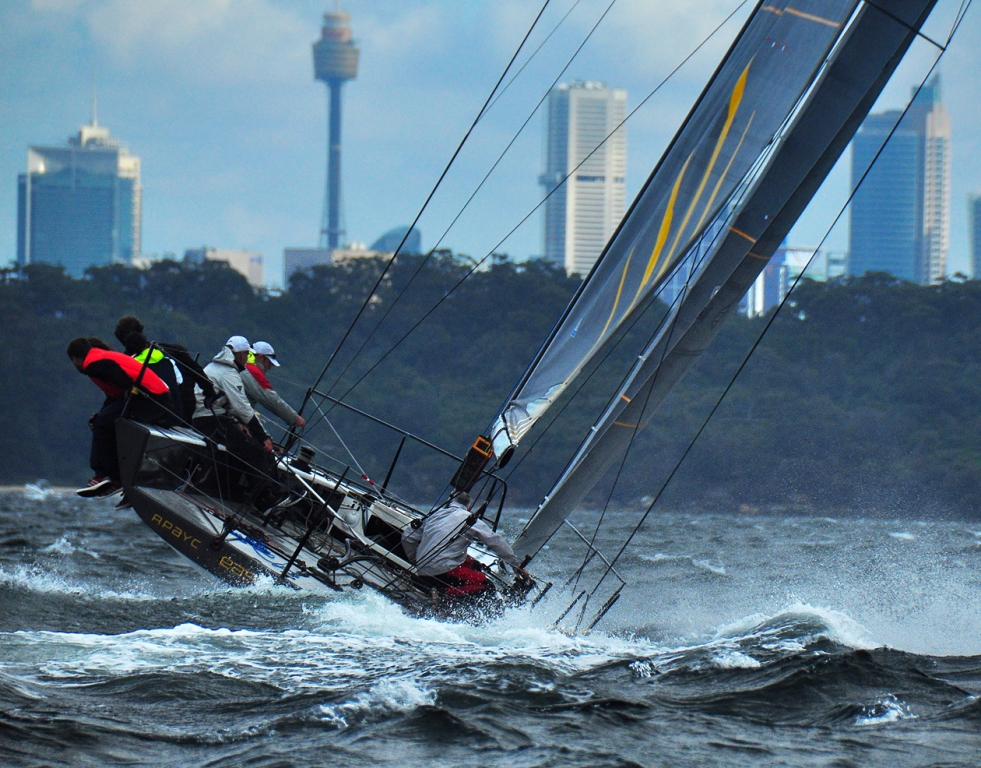 A moody Sydney winter’s day with sou’west breeze gusting close to 30 knots provided the first heavy weather hit out in a long time for the MC38 fleet contesting the second act of their Winter Series.