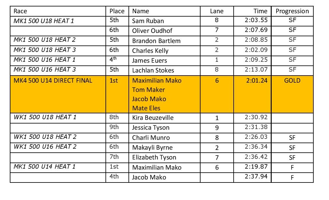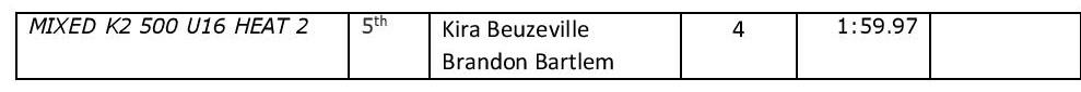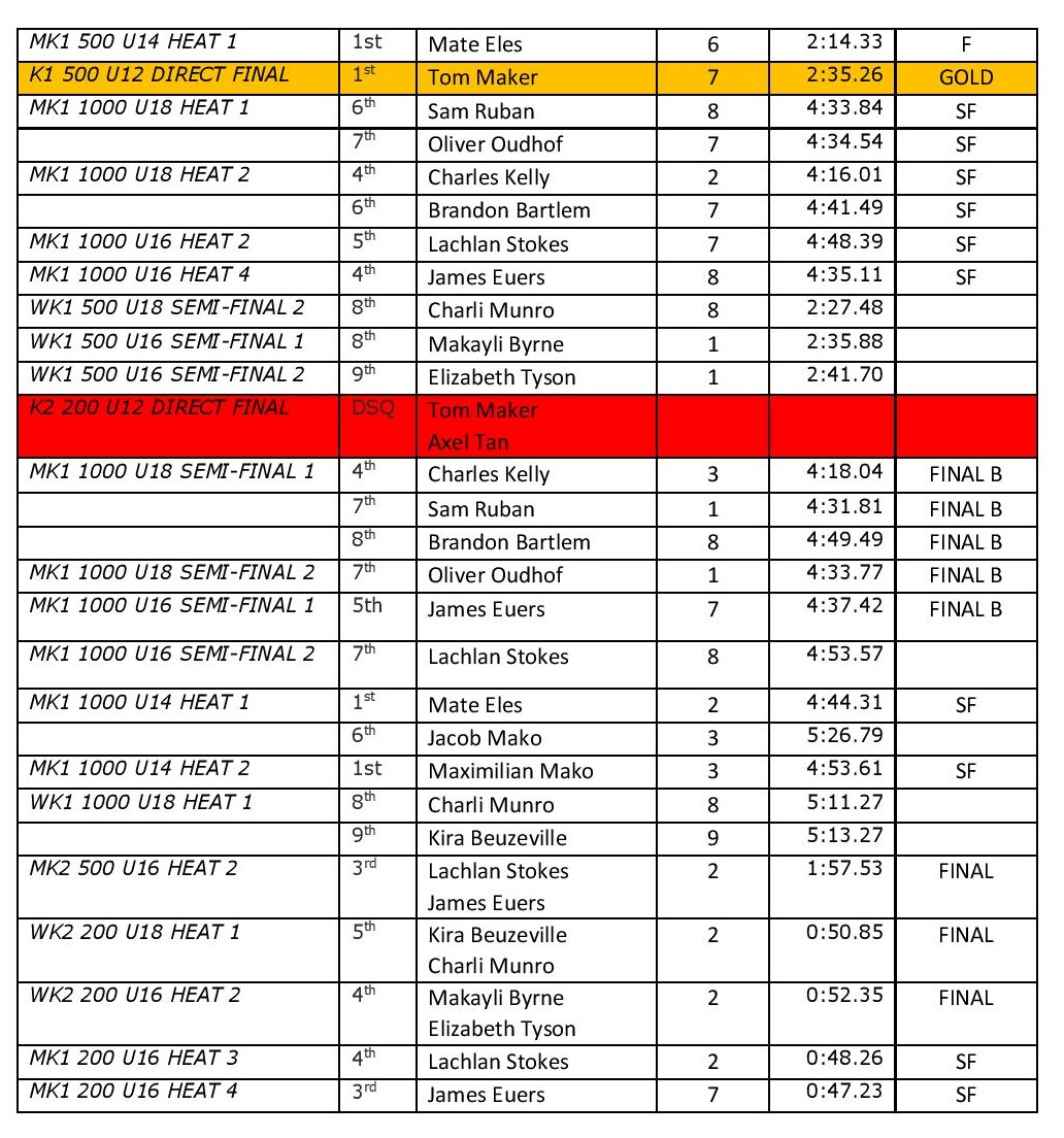 - 3 K2 crews progressed straight to finals from heat: Under 16 K2 500 of James/Lachlan, Under 18 K2 200 Kira/Charli, Under 16 K2 200 Makayli/Elizabeth - pretty awesome.