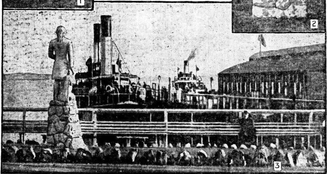 Real progress began with the birth of the municipality In 1877; it is said that the Idea of Incorporation first came up at a wallaby hunt. Since that time Manly's. progress has been in a long line of gradual ascent, with little ups and downs In it here and there, and a steep shoot upwards in tho last 10 years or less. But even In the late seventies the place was practically a village with one terrace of houses to the right of the quay; the rest was mainly open paddocks and bush. The return fare to Sydney was In those days 2/, though in about 1880 it was reduced to 1/6, and If as many as 200 people came over it was reckoned a big crowd. But there was nothing but the open beaches for visitors when they did come, and surfing was not then a craze. Nowadays, you can see 10,000 to 12,000 people on the South Steyne Beach at any week-end, and of an ordinary summer morning from 3000 to 6000 are in the surf by 6 o'clock.