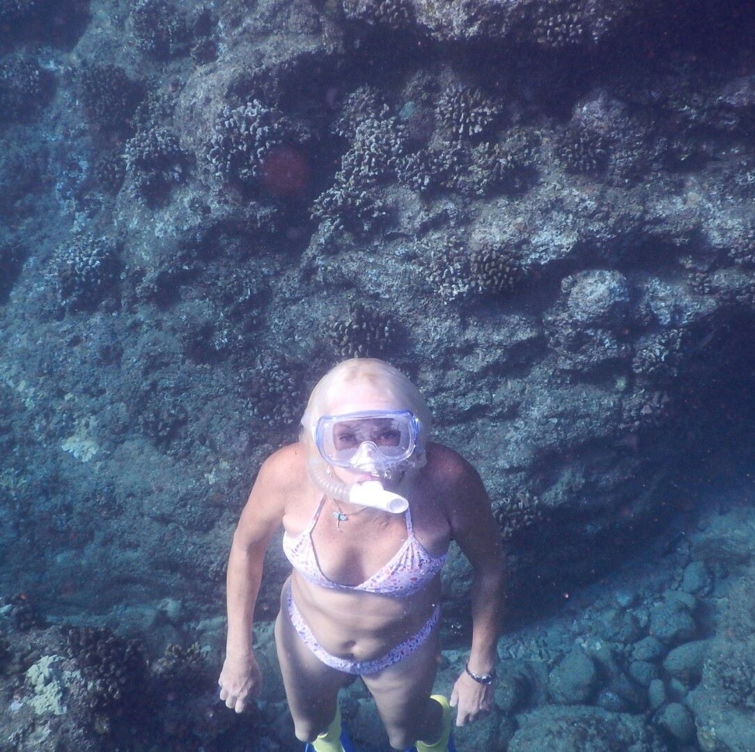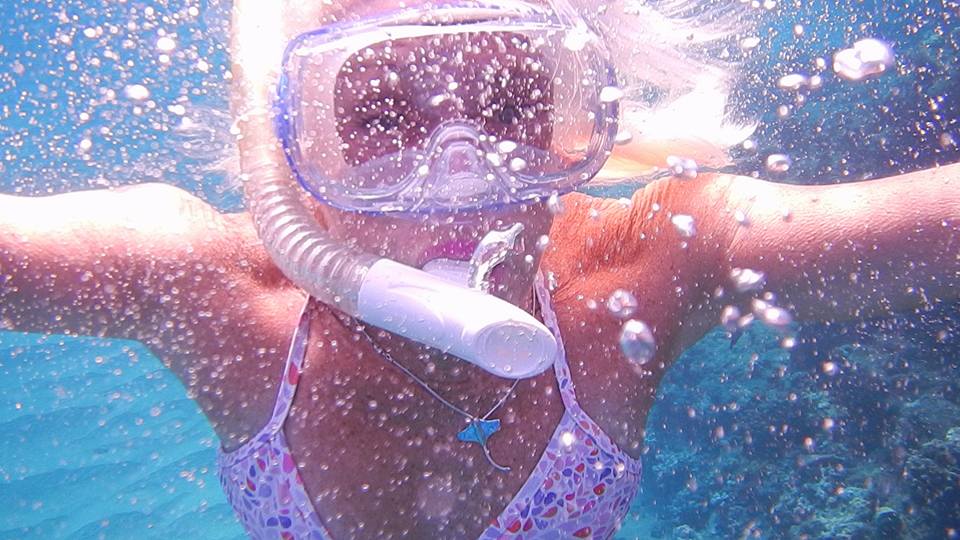 When we come back from our swim we like to just float out to Jump Rock and back. While there we look for our friend ‘Big Blue’, this great big groper, who has his girlfriends hanging around him. Sometimes he’s in closer and we’ll swim over the top of him as he swims back out.