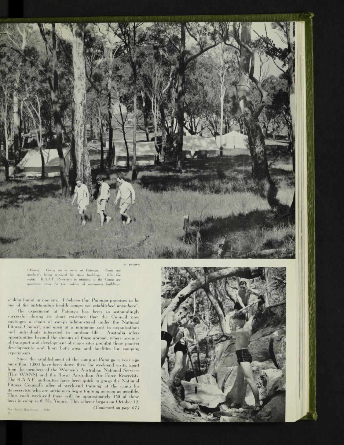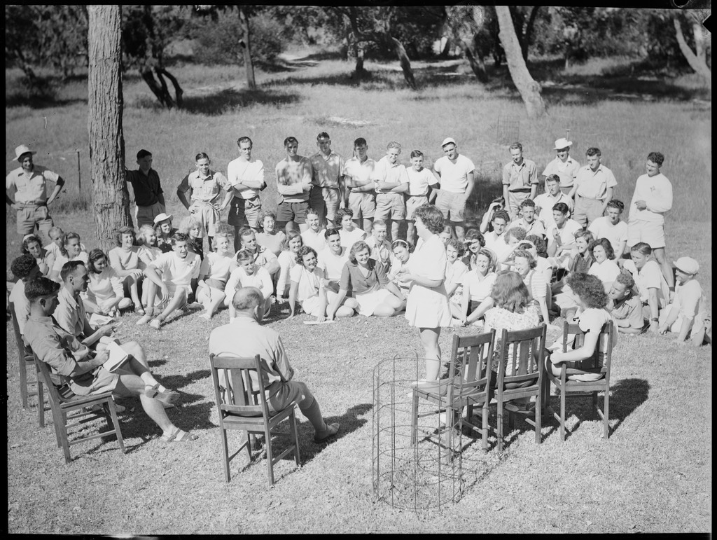 'We have already established camps at Broken Bay, Lake Macquarie and Mona Vale. The boys and girls who go to these camps don't just 'rough it' in the bush or at the seaside. The camps are designed to give the boy a change of environment, to train him in fitness of body and alertness of mind by games, exercises, study groups, camp craft, camp, newspapers and leadership. The establishment of a chain of National Fitness Camps will develop our nation. 'In the matter of religion, tell your church people that we have religious services every Sunday for the whole of the camp staff and all the youngsters. The service will be conducted by noted lay preachers, especially men with University training.