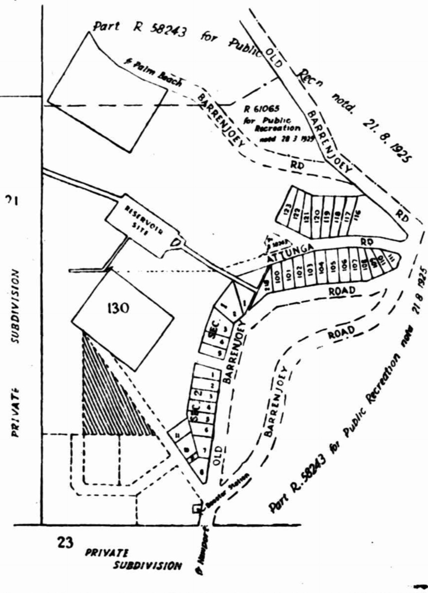 The publication of this by the then Warringah Shire Council in the Gazette was accompanied by drawings which showed not only the area set aside but also had notations about earlier parcels of land set aside to be kept as green space - something the first half century of that council did over and over and over, requiring developers to set aside lots for parks and thoroughfares between parks as part of early subdivisions and buying parcels of land to provide access and reserves alongside beaches when land was relatively cheap, even during the 1930's straitened financial times, and supporting the planting of trees during the 1940's and 1950s when the Tree League became a part of what was discussed in Sydney and acted on in the wake of urbanisation spreads.