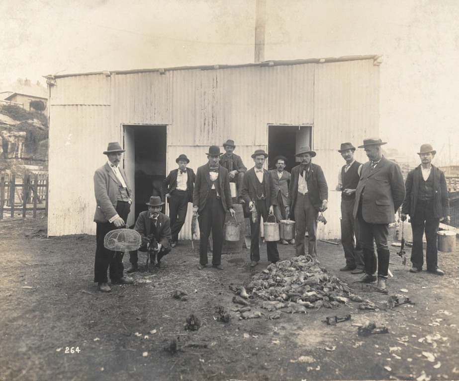 A pathetic interest attaches to this photograph, because the tall figure, the first on the left, is Dr. Reid, Chief Quarantine Officer, who lost his life on the ill-fated ferry steamer Greycliffe in the recent harbor disaster. This is the very last photo, of the doctor, and taken just a few days before his tragic death. The two seated in the foreground are Mr. Harrison and Captain Green, the host on this unique occasion. People talked about (1927, November 12). The World's News (Sydney, NSW : 1901 - 1955), p. 9. Retrieved from http://nla.gov.au/nla.news-article130605854