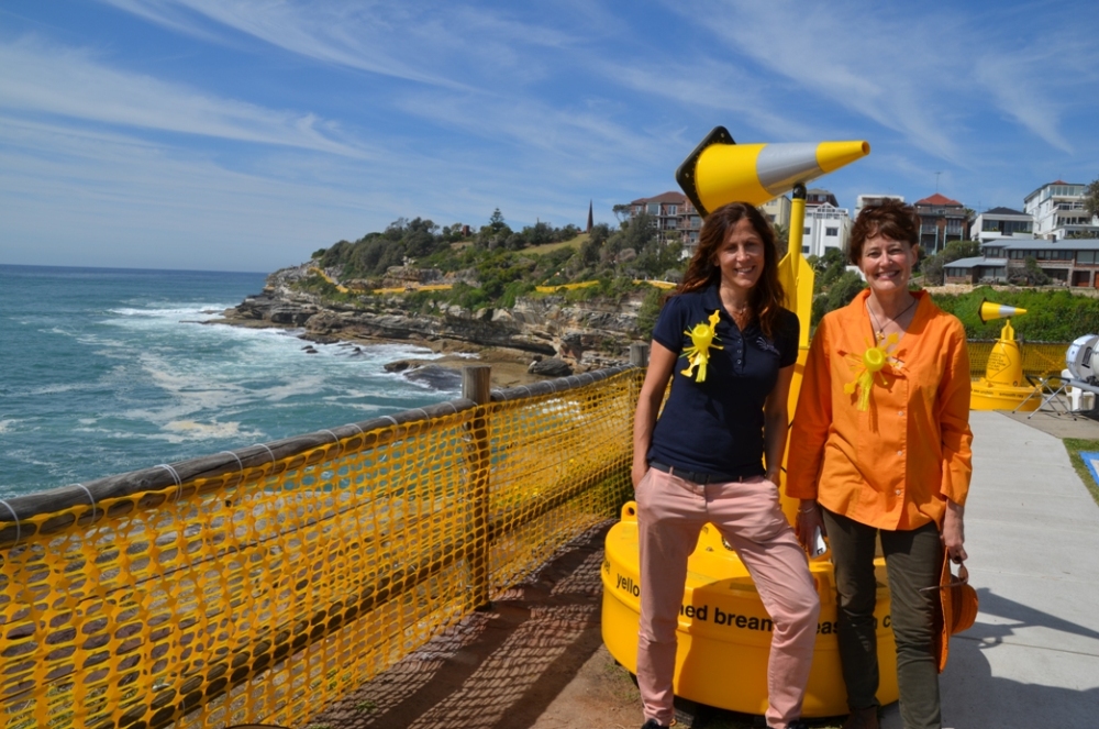Dr Adriana Verges (left) and artist Jennifer Turpin at the 2016 Sculpture by the Sea art installation at Bondi.