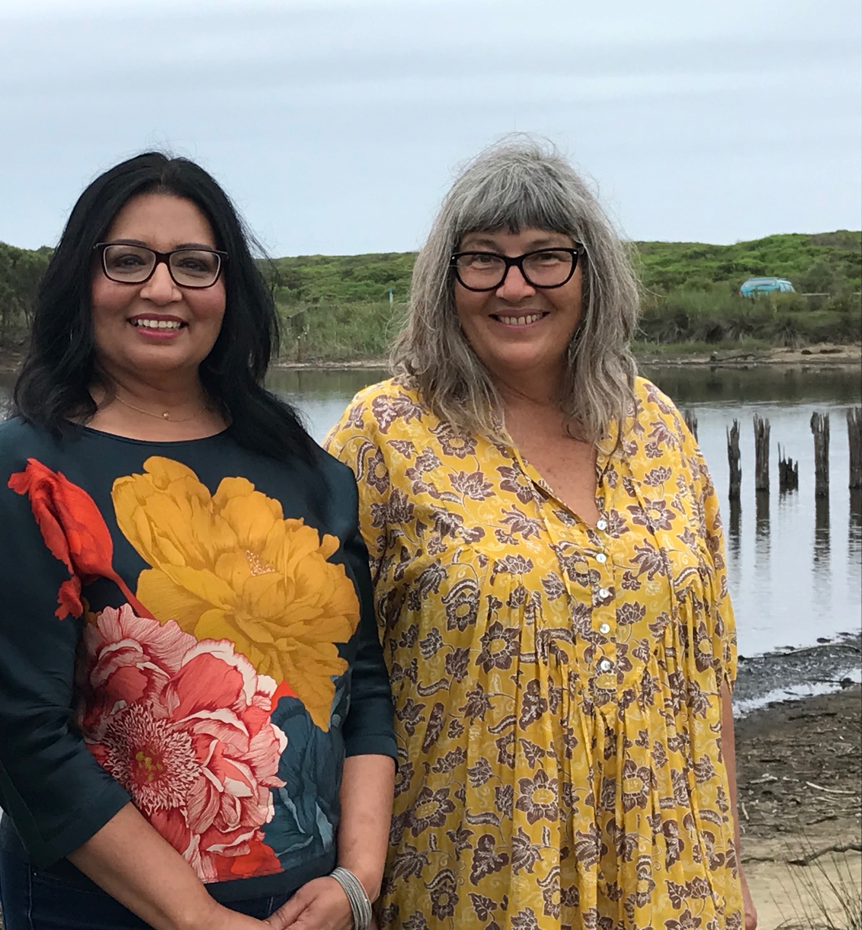 NSW Greens Senator Mehreen Faruqi with Mackellar candidate Pru Wawn