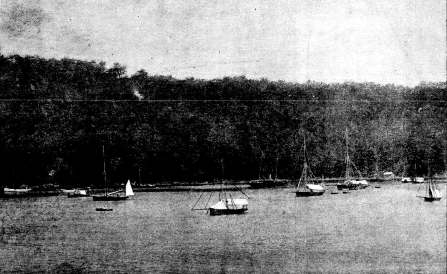 The 1860's also marked the regular commencement of 'excursionists' making visits to Pittwater with The Basin (then also called 'Blind Cove') at times included. The mouth into the inner Basin being a lot wider and deeper than it is today, larger steamers could get in and out safely.